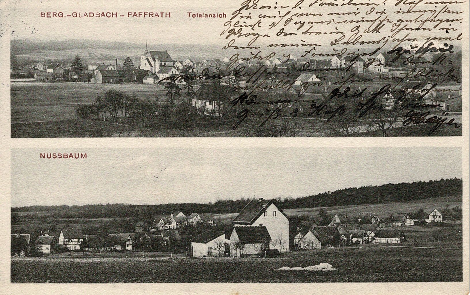 Sammlung Joachim Brokmeier: Ansichtskarte Paffrath - Nussbaum, Datierung: 1913 und 21.8.1915
